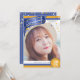 This modern and stylish graduation design features the text 'Graduate' on a ribbon above your personal image with an border of stripes in bold gold, white and blue. Add your celebration event details on the reverse. Search ID890 to see other color options for this design. Please contact the designer to request your own school colors for this design.