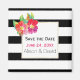 Beautiful wedding Save the Date magnet featuring beautiful pink and purple tropical watercolor flowers and black, white stripes. A great choice for a spring or summer wedding.