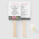 Stylish wedding program fan done in white, with black and white stripes, across the bottom and pretty pink peonies decorating the bottom front, of the fan. Personalise the text for your wedding day. Matching products are available.