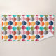 This towel set has a mid-century modern design of striped semicircles and solid semicircles put together on a field of white.