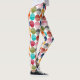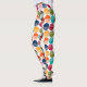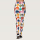 These leggings have a mid-century modern design of striped semicircles and solid semicircles put together on a field of white.