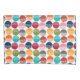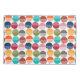This pillowcase has a mid-century modern design of striped semicircles and solid semicircles put together on a field of white.