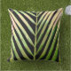 The diagonally striped tropical pattern by ZoeSPEAK on this 20” Throw Pillow was made from an original photograph of a royal palm frond in the sunshine, against a dark green background of pine trees. The contrast is strong between the dark background and the yellow green leaves with their salmon pink highlights, making this abstract design from nature look almost like an animal print.