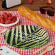 The striped tropical pattern on these Paper Plates was made from an original photograph by ZoeSPEAK of a royal palm frond in the sunshine, against a dark green background of pine trees. The contrast is strong between the dark background and the yellow green leaves with their salmon pink highlights, making this abstract design from nature look almost like an animal print. There is text which is set for you to personalise to suit the occasion, or delete if you prefer.
