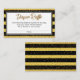 Here is a sophisticated option for your baby shower diaper raffle planning. This design has been embellished with wide black and golden yellow stripes, faux gold confetti, and faux gold glitter metallic header text. Behind a white badge, I've covered the background in a bold striped pattern. You can change the yellow part to any colour you like. On the front, a bold header reads "Diaper Raffle" in an elegant script font, which I've added as a graphic overlay. The text has been embellished in the gold glitter graphic treatment. Then you have an editable message, "Come bearing diapers in packs of any size, and your name will be entered for a chance to win a prize!" then a line for participant names to be written on. On the back I've added more stripes and the faux gold confetti graphic. Please don't hesitate to reach out if you need assistance. // 89 // Designed by Melody Watson for Paper Muserie.