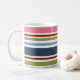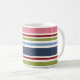 Fun stripe mug in shades of pink, blue, and green! By artist Becky Volk