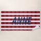 Series, of Abstract planks, stacked to form, wide stripes, in fading shades of, red, pink, blue, and black, against white, background-with your choice of Monogram, in Navy-blue.