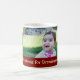 Merry Christmas Grandma custom photo mug in stylish red, yellow and green with festive stripes pattern with customisable text and photo, perfect as a holiday gift.
