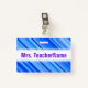 Stripes of Blue Pattern + Custom Teacher Name ID Badge