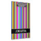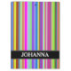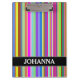 This clipboard design features an eyecatching pattern of stripes (or lines) of various colours. It also features a customised name.