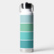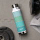 The bottle looks even better in real life. The ice cubes I put in lasts all day! I have my bottle with me all the time. It's summer and having something cold to drink feels amazing. With this bottle I always have something super cold. I have only tried the hot drink once and it lasted a long time as well. The color blue is a navy blue and the white printed on it is vibrant. It printed perfectly. I love my personalized smile water bottle.
