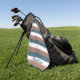 Do you like golf towels with minimalist designs? This golf towel has a pattern of mocha brown, teal and white stripes. The name can be changed and personalised!