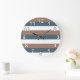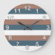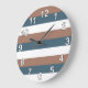 Stripes Pattern Teal Brown White Numbers Large Clock