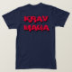 T-shirt with text from strips. On back KRAV MAGA stand