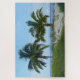 A great egret (Ardea alba) strolled back and forth along a sand dune adjoining a beach on Treasure Cay, Great Abaco Island, the Bahamas. Beyond are palm trees and the turquoise water of the Caribbean Sea.