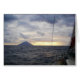 Approaching the volcanic island of Stromboli, on a small yacht, under a dramatic sky.