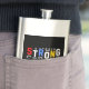 A graphic design featuring the word "STRONG" in bold, multicolored letters, accompanied by the inspiring phrase "NEVER GIVE UP."