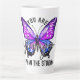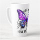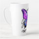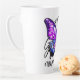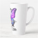 This vibrant latte mug features a stunning butterfly with wings adorned in shades of purple, pink, and blue. The intricate patterns and sparkling accents on the wings add a touch of elegance and whimsy. The word "Stronger" is boldly written across the butterfly, symbolising resilience and empowerment. This mug is perfect for those who appreciate beauty and strength in their daily routine.
