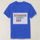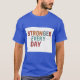 The t-shirt design features a bold, minimalist design with the phrase "Stronger Every Day" printed in a large, sans-serif font. The text is centred on the shirt, with a subtle blur effect creating a dynamic background. The overall aesthetic is clean and modern, with a motivational tone.