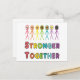 Stronger Together design is an inclusive graphic featuring a diverse group of stick people standing with each other. Because they are stronger together!