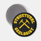 Structural Geologist - black magnet with yellow collegiate style lettering and crossed rock hammers graphic.