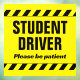 "Please be patient". Warn other drivers that there is a new driver on the road! Student Driver window cling decal for Drivers Ed, Driver's Education road class or parents teaching thier 16 year old how to drive. Yellow hazard warning stripes with bold yellow and black text. This cling is applied from INSIDE the car UNLESS you change the "adhesive" side above.
