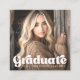 Trendy graduation photo networking profile card with the text "graduate" in a retro font. Add your name, year, school and photo. You can change background colour, fonts and font colours, move and resize elements with the design tool.