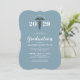 Student Nurse Graduate Dusty Blue Class Of Medical Invitation has a simple modern design has a customisable trendy blue background on front and back. The front of invite has a grey caduceus symbol on upper centre and bold white typography with custom graduation year. The text "graduation" is in modern calligraphy script lettering. A template has been made available for you to enter your information and view your very own invitation.