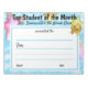 Fun certificate for teachers to fill-in for their top student of the month, personalised with your title, class name, other text and colour scheme. Matches the Student of the Month wall display poster available in my store, perfect for student recognition.