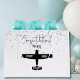 Simple black silhouette of an aeroplane with a black title "Congratulations" typography in calligraphy sprinkled with silver stars confetti. Personalise it with student pilot's name and first solo flight date. Remind them how proud you are of them, now go celebrate their first milestone!