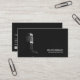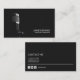 A modern dark studio microphone business card for musicians, singers, vocalists and music producers. Would also work great for people who run a podcast. The minimalist card design shows a studio microphone on dark background with your name and occupation on the front. The back of the business card design is showing a plain black background with your contact information, including a social media handle.