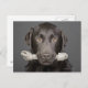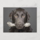 Studio portrait of chocolate labrador carrying postcard