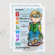 An adorable invitation for your little avid reader's birthday. It features a boy sitting on a stack of books reading against a light blue grunge background.