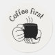 Relatable student sticker featuring the quote “[Coffee first]”. Perfect for study sessions, laptops, and notebooks. Designed for students who love fun and aesthetic academic vibes.