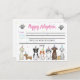 This adorable Puppy Adoption card is the perfect addition to any puppy themed birthday party. Pair it with a new stuffed puppy for your guests and let them take home an "official" adoption card. This card is completely customizable and can be changed to fit your specific needs.