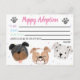 This adorable Puppy Adoption card is the perfect addition to any puppy themed birthday party. Pair it with a new stuffed puppy for your guests and let them take home an "official" adoption card. This card is completely customisable and can be changed to fit your specific needs.