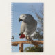 Pretty African Grey on a tree stand with her pretty grey feathers and red tail watching her surroundings outdoors against the blue sky and oak trees.