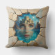 Experience a bygone civilisation with this throw pillow, which features a broken shard of pottery from ancient times, showing the ruins of the mythical lost city of Atlantis, emerging from the head of a young blue-eyed woman and the watery depths to which it had been consigned for untold millennia. Reverse shows identical design.