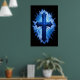 Stunning Blue Christian Cross on black | Poster
