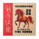 Welcome the Chinese New Year on February 17, 2026, with this tile, which features the stunning design of a fiery red horse with flame-like mane, tail, and flame motifs, on a peach-colored background with a repeating pattern of Chinese letterforms for the traditional new year salutation. Text and greetings can be personalized in English and Chinese.