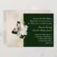 So pretty you can almost smell the gardenia on this elegant wedding invitation done in a ivory damask pattern, on the left side and covering the back, a dark green, on the right front. Graphics of a cream coloured lace ribbon with a golden flourish and a lovely white gardenia flower decorates the middle of the card between the two background and across the back. Text in ivory is ready to personalise for your wedding. Lovely invitation for any Season of the year.