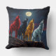 Experience the primal call of the wild with this throw pillow, which features a quartet of wolves, each representing the leader of a different pack, howling in unison from the clifftop at a full moon in the desert night. Reverse shows identical design.