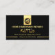 Overleaf, the gold logo is at the top followed by your prestigious name, the contact details and a slogan option to publicise your services. All lettering are in faux gold.