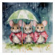 Colorful and fun. Three gorgeous little mice in the rain. All huddled up under a green umbrella.