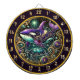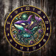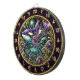 Transform your man cave or fishing lodge with this extraordinary dartboard-themed artwork. The centerpiece showcases a majestic orca, its body shimmering with intricate patterns in deep purple, gold, and vibrant blue, evoking the feel of stained glass. Swimming gracefully beside it, a beautifully detailed turtle adds charm to the aquatic theme.