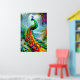Stunning peacock with magnificent tail feathers - original from Ricaso. Peacock bird in red, green, orange and purple colors wall art / poster / print