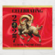 Elevate your 2027 lunar new year entertainment and dining experiences with these celebratory sparkling wine labels, which feature the Fire Goat dancing on a luxurious faux red silk background bordered by faux gold foil, plus the Chinese letterform for the Goat/Sheep/Ram rendered in faux gold foil, standing in place of the zero in 2027.