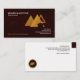 Turning over, in a white background, you have a dark red tab to be the representative colour from the front. Near this, are all your contact details. Just slightly below, you have an option to advertise your services. A faux gold icon logo is presented at the card's floor, lower left corner. It is the same piece that is presented at the front face of the card. If you decide to upload a photo, the measurements are 1,000 x 1,000 pix.