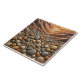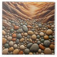 A beautiful arrangement of tiles mimicking natural rocks provides a striking visual appeal. The textured surfaces reflect various shades under the warm glow of sunset, evoking a sense of tranquillity and connection to nature in an artistic display.