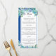 Vintage yet modern, with natural elements and soft romantic style. The back of the menu features a stunning sapphire blue background with luxurious floral details, names of the happy couple, and their wedding date. Design©Rosalind Moore, Cherry Lane Designs.